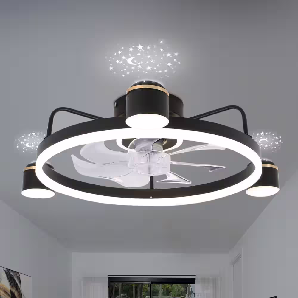 Oaks Aura 28in. LED Indoor Black Starry Night Bladeless Smart App Control Low Profile Ceiling Fan W/ Light Flush Mount Ceiling Fan
