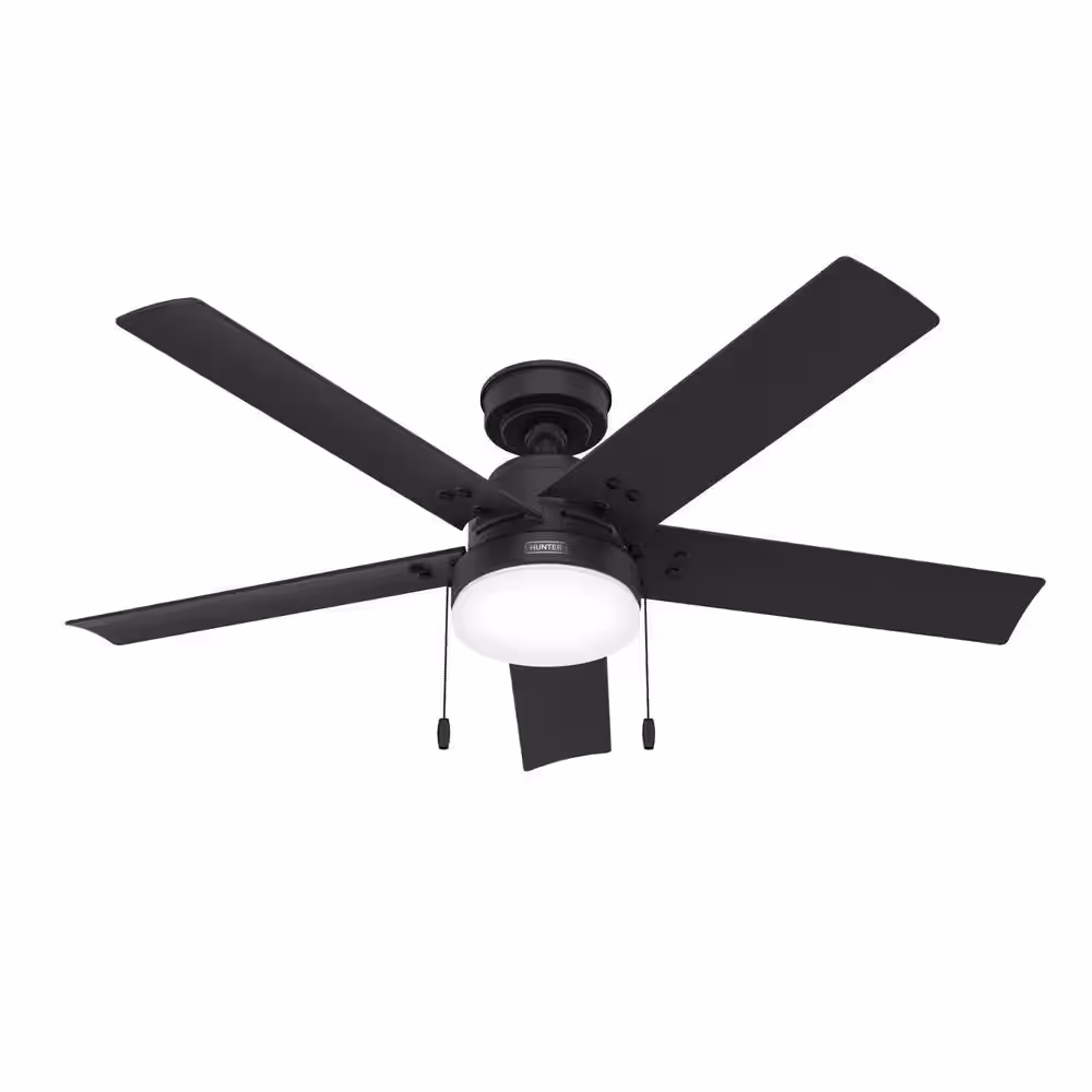 Hunter Sea Point 52 in. Outdoor Matte Black Ceiling Fan with Light Kit Included
