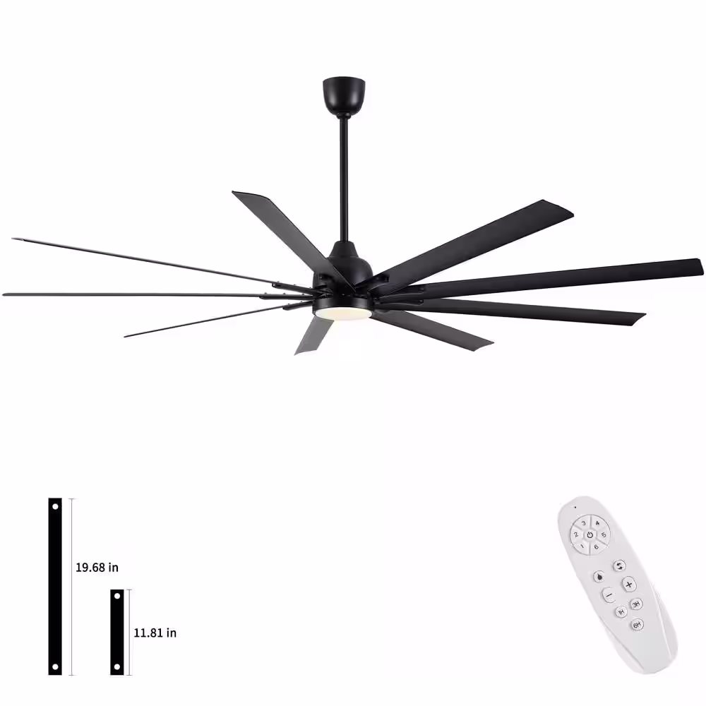 Parrot Uncle 75 in. Integrated LED 8-Blade Matte Black Ceiling Fan with Light and Remote Control