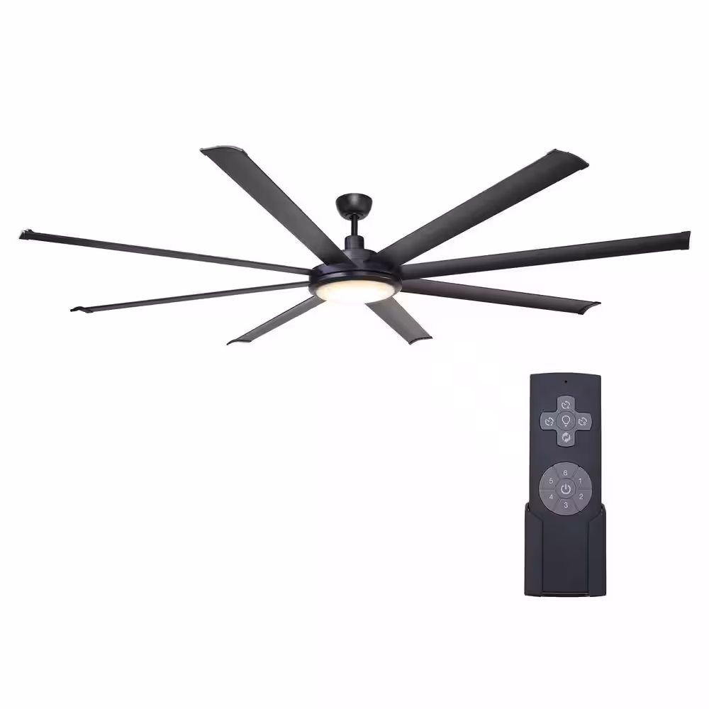 None 84 in. Windmill Integrated Dimmable LED Indoor Large Black Industrial Ceiling Fan with Remote and DC Reversible Motor
