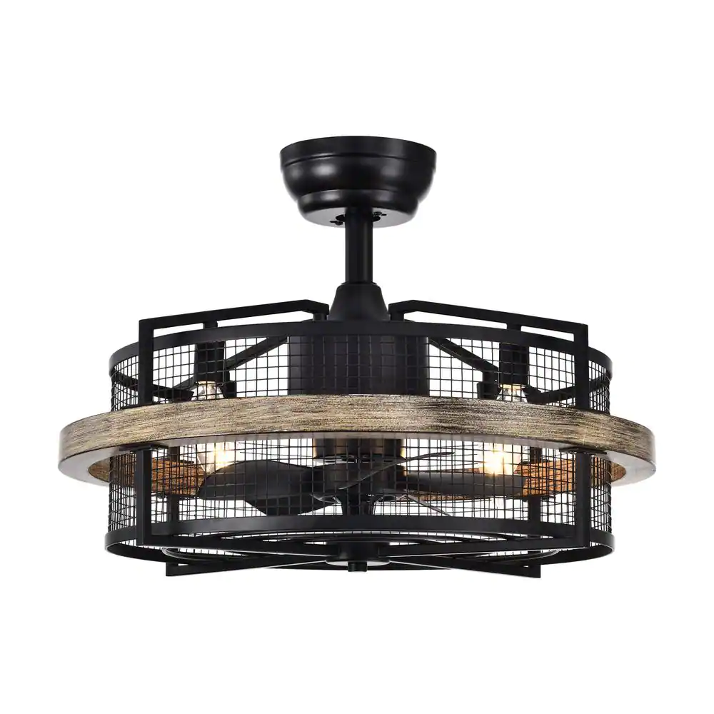 Parrot Uncle 20 in. Indoor Modern Mesh Metal Drum Caged Black Ceiling Fan with Remote Control and Light Kit