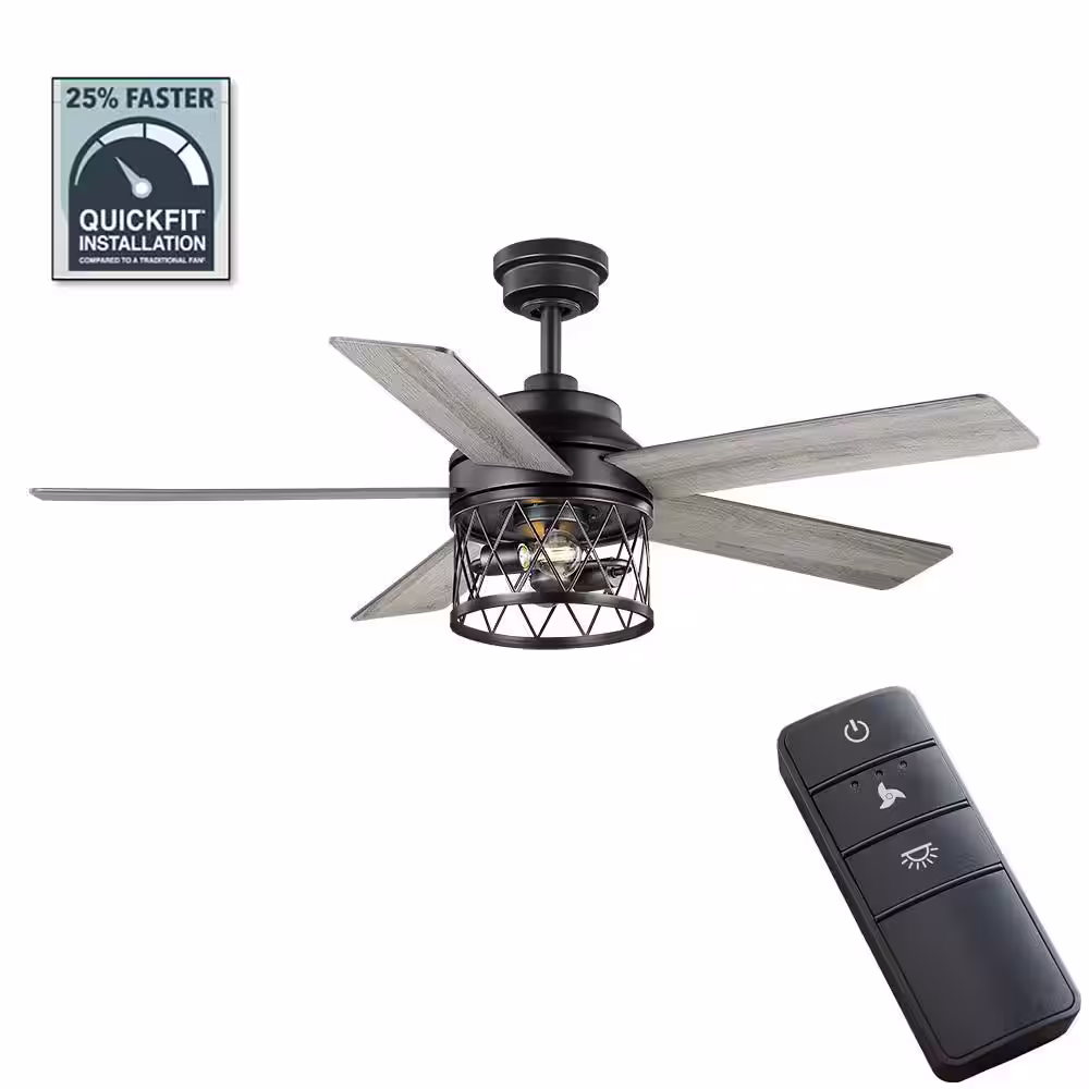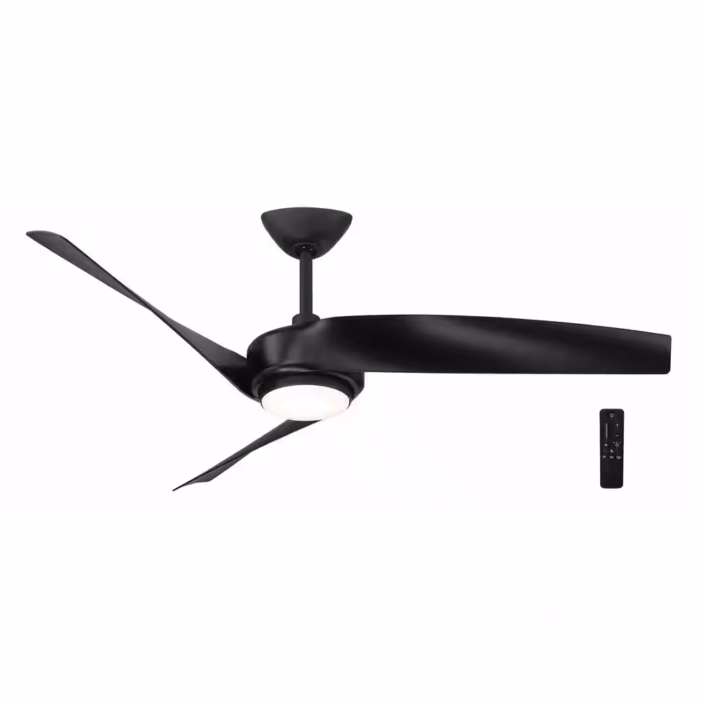Hampton Bay North Grove 52 in. Indoor LED Matte Black Dry Rated Ceiling Fan with 5 Reversible Blades, Light Kit and Remote Control