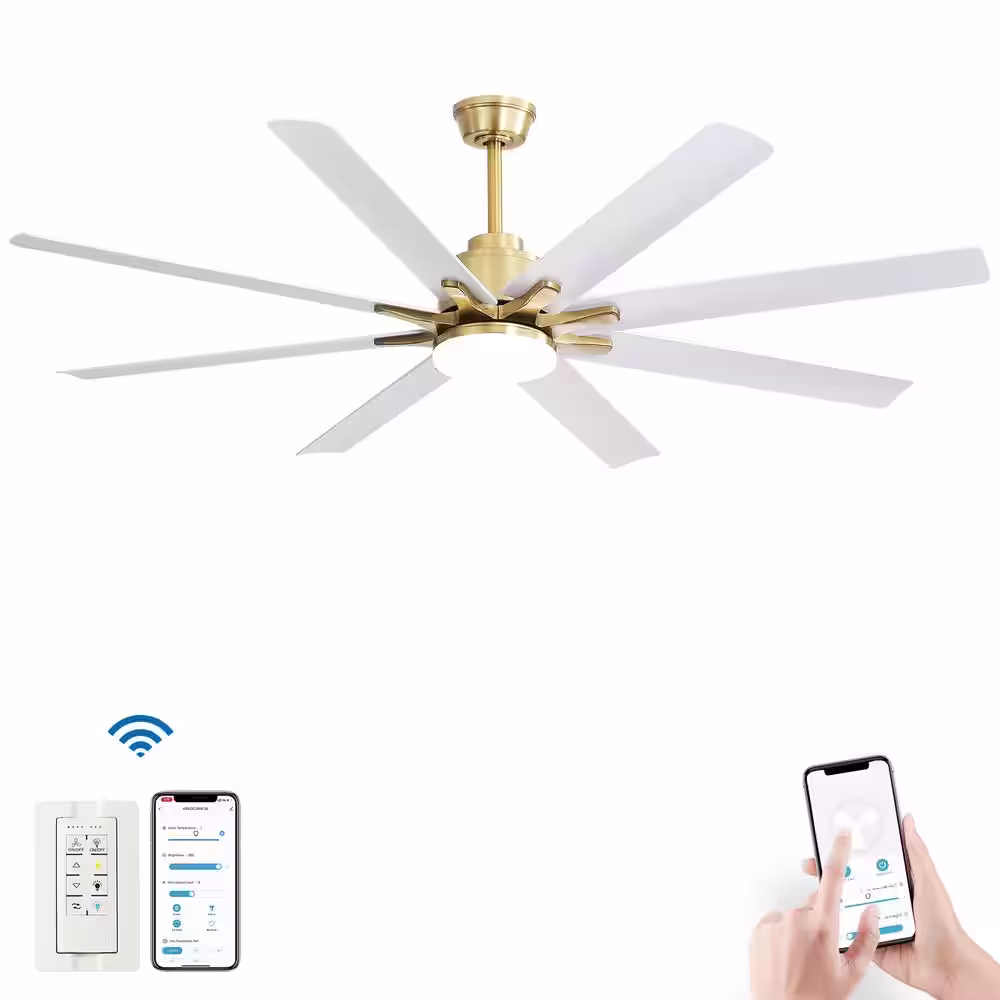 Sofucor 66 in. LED Indoor/Outdoor Gold Smart Ceiling Fan with Remote and App Control