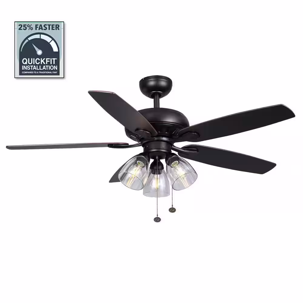 Hampton Bay Rockport II 52 in. Indoor Matte Black LED Ceiling Fan with Light kit, Downrod and Reversible Blades Included