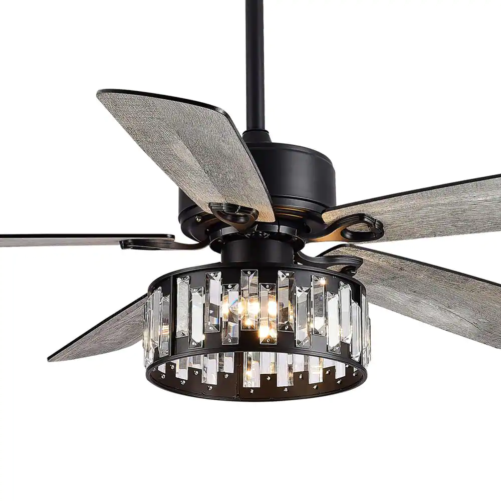 Breezary Sergio 52 in. Indoor Crystal Black Ceiling Fan with Remote Control and Light Kit Included