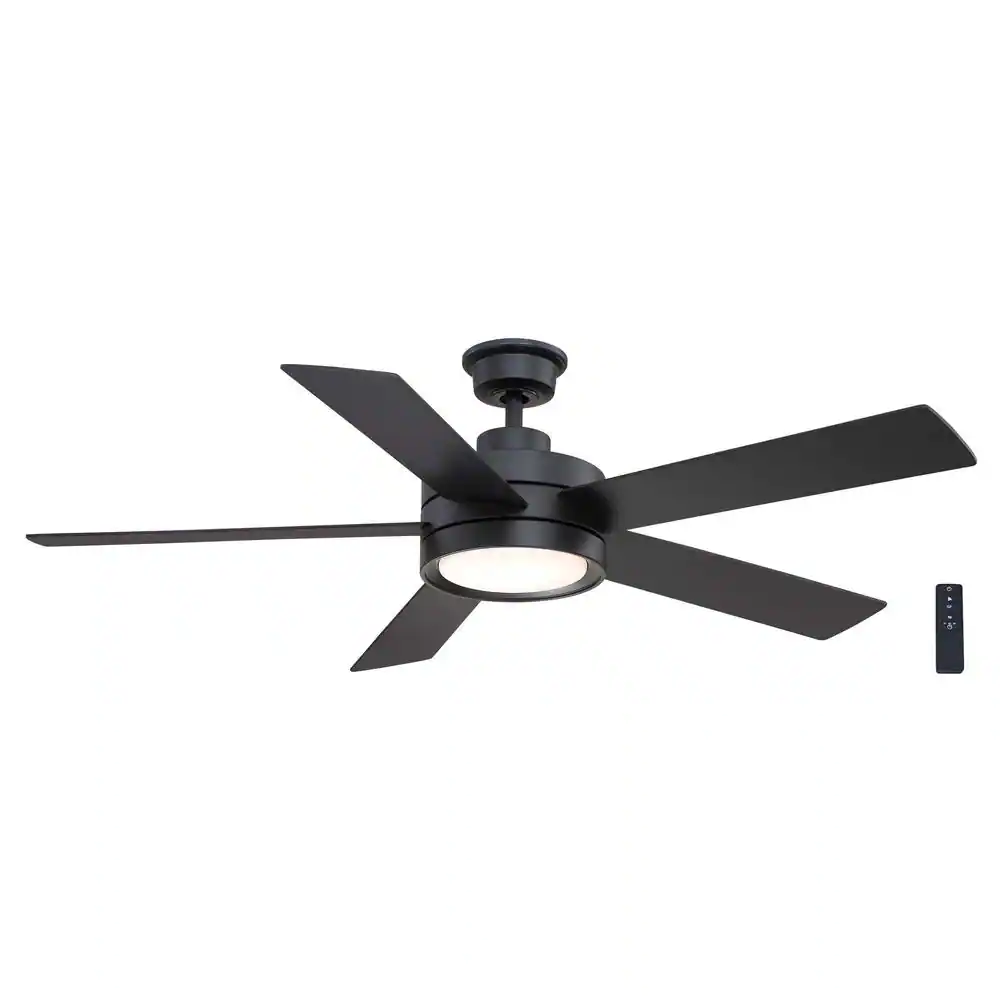 Hampton Bay Rockport 52 in. LED Matte Black Ceiling Fan with Five Reversible Blades
