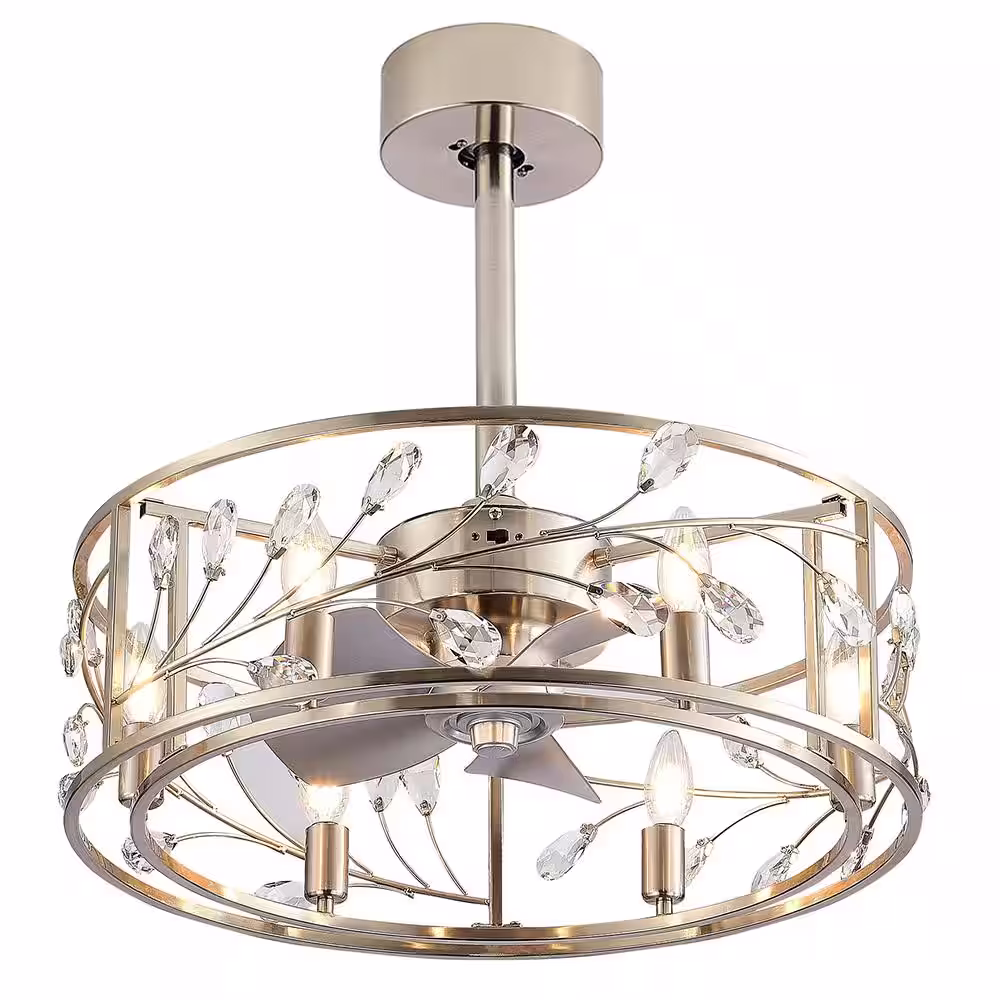 Breezary Fairy 20 in. Indoor Satin Nickel Chandelier Ceiling Fan with Light Kit and Remote Control Included