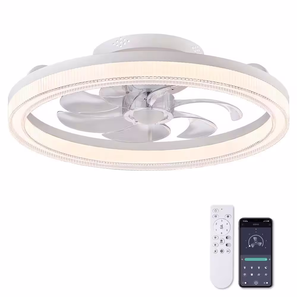 None 19.6 in. Indoor Low Profile White Ceiling Fan with Light Dimmable LED Reversible Blades for Living Room
