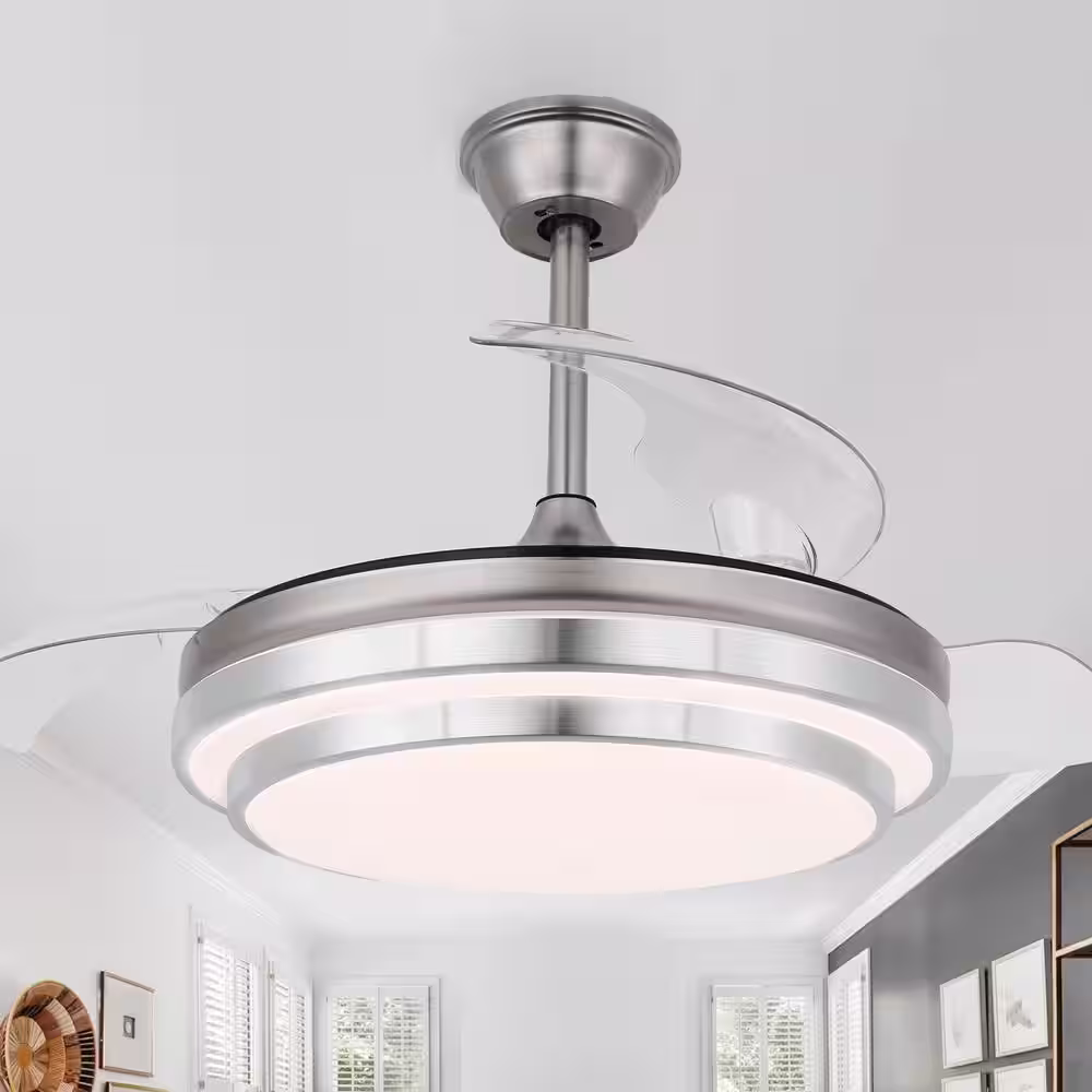 Bella Depot 42 in. Indoor Brushed Nickel Retractable Ceiling Fan with LED Light and Remote, 6-Speed Reversible Ceiling Fans