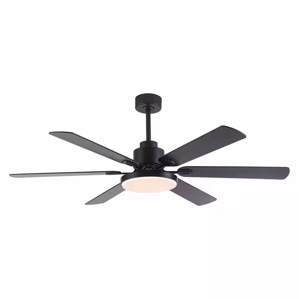 Flint Garden 60 in. Indoor Color Changing Integrated LED Matte Black 6-Blade Ceiling Fan with Light Kit, DC Motor and Remote