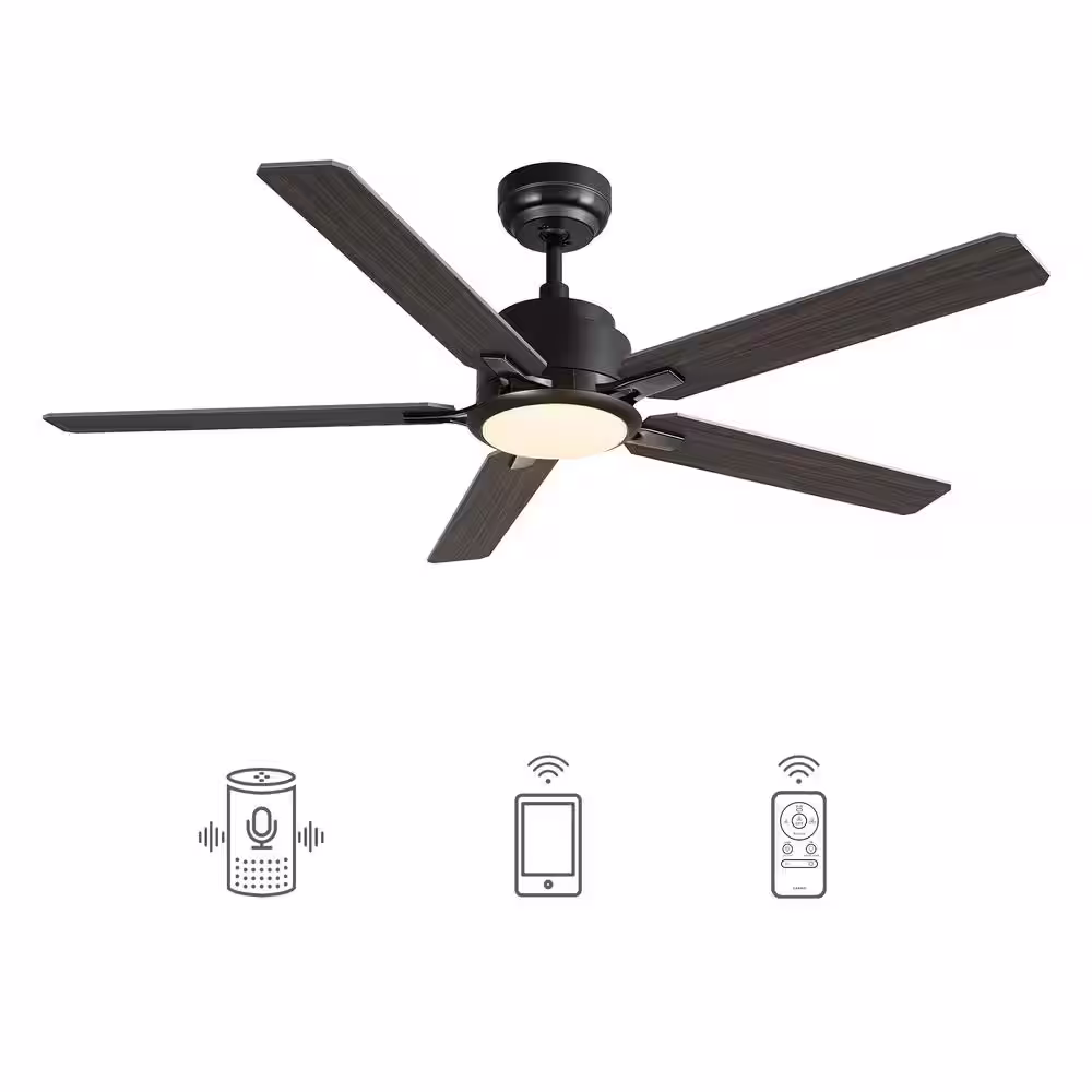 CARRO Essex 52 in. Integrated LED Indoor/Outdoor Black Smart Ceiling Fan with Light and Remote, Works w/Alexa/Google Home