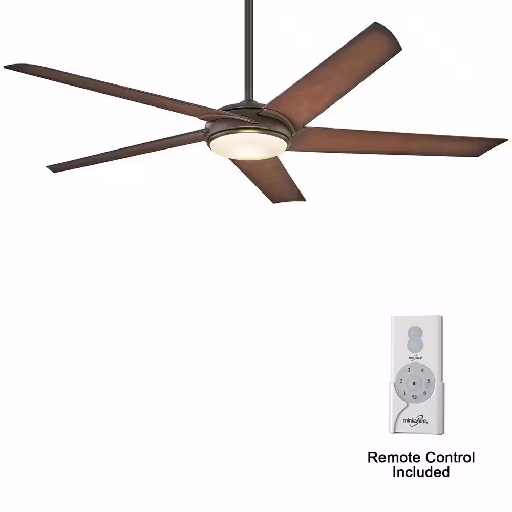 MINKA-AIRE Raptor 60 in. Integrated LED Indoor Oil Rubbed Bronze Ceiling Fan with Light with Remote Control
