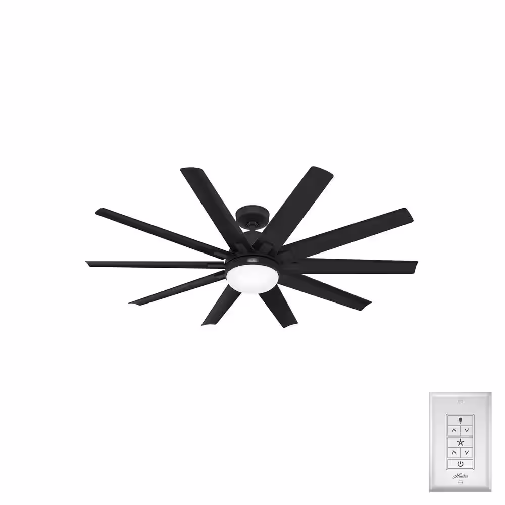 Hunter Overton 60 in. Indoor/Outdoor Matte Black Ceiling Fan with Light Kit and Wall Control Included