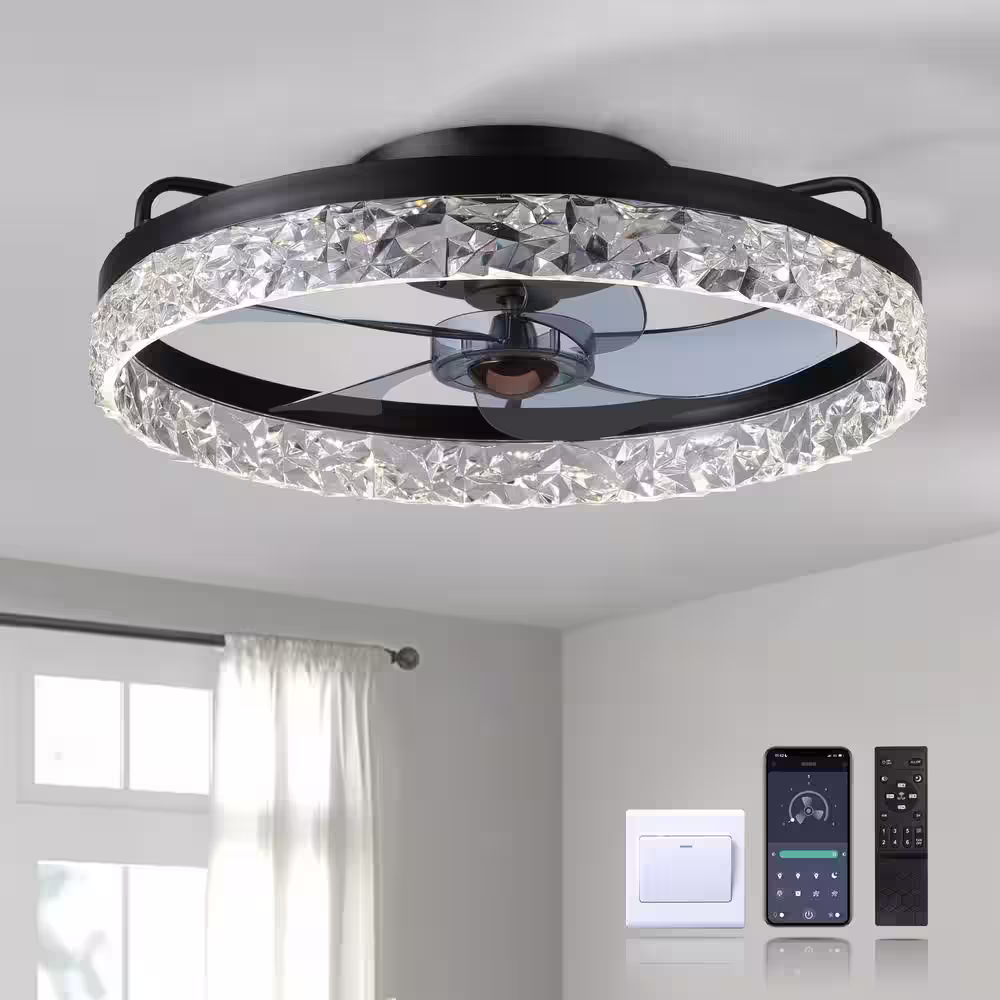 None 19.6 in. LED Indoor Black Flush Mount Ceiling Fan with Light Dimmable for Low Profile Bedroom