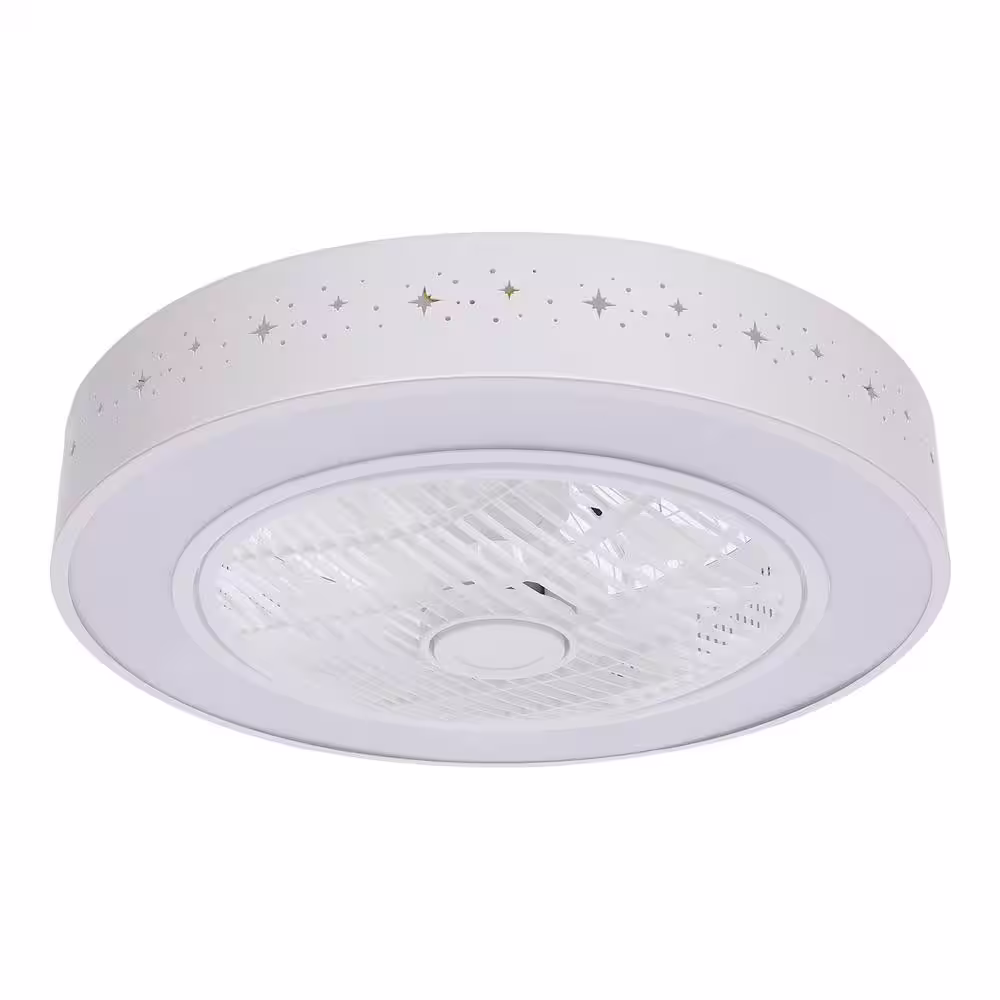 None 21.6 in. Modern White Indoor Star Decor Shade Integrated LED Enclosed Ceiling Fan with Remote