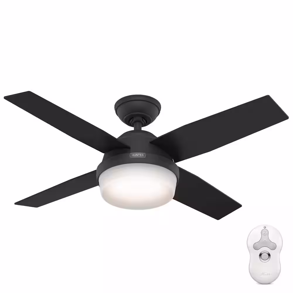 Hunter Dempsey 44 in. Indoor Matte Black Ceiling Fan with Remote and Light Kit Included