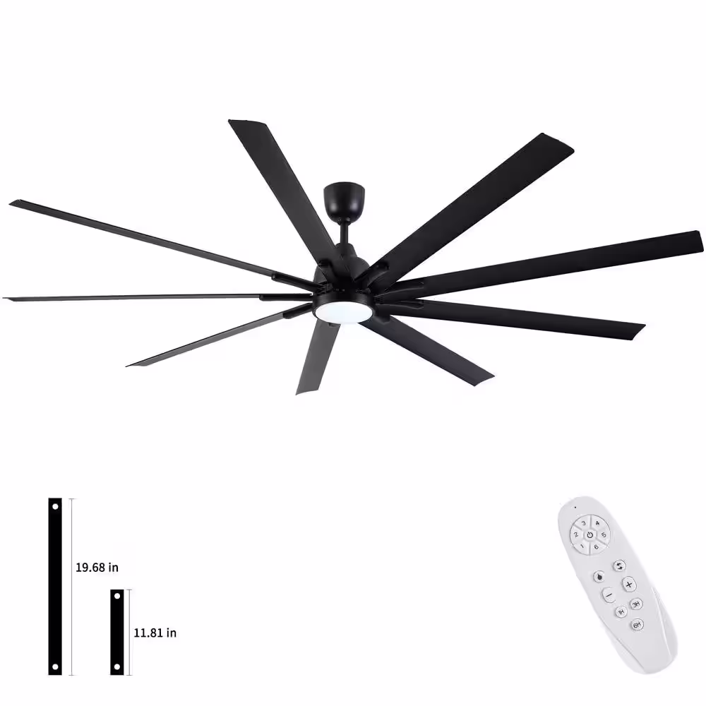 None 84 in. Industrial Indoor Large Black Ceiling Fans with LED Light Kit for Patio, Remote and DC Reversible Motor Included