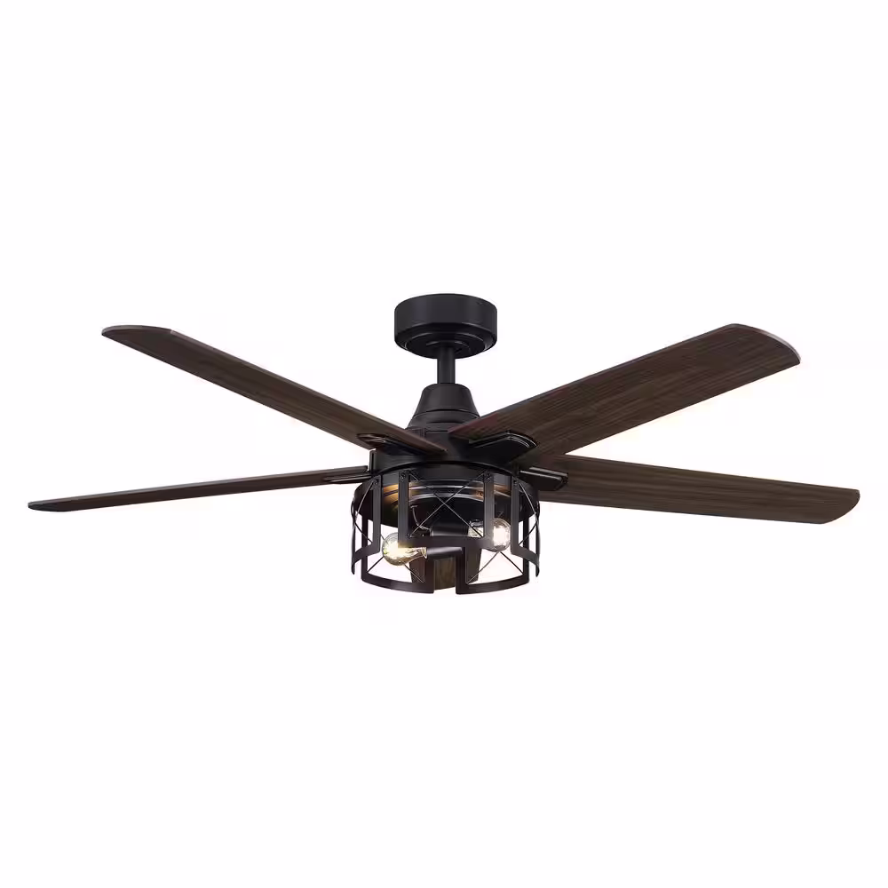 Parrot Uncle 52 in. Industrial Reversible Blades Matte Black Ceiling Fan with Remote Control and Light Kit
