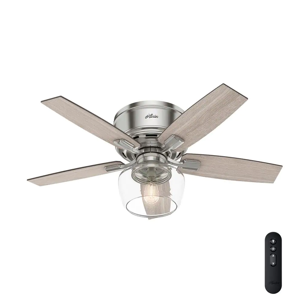 Hunter Bennett 44 in. Indoor Brushed Nickel LED Low Profile Ceiling Fan with Light Kit and Remote Control