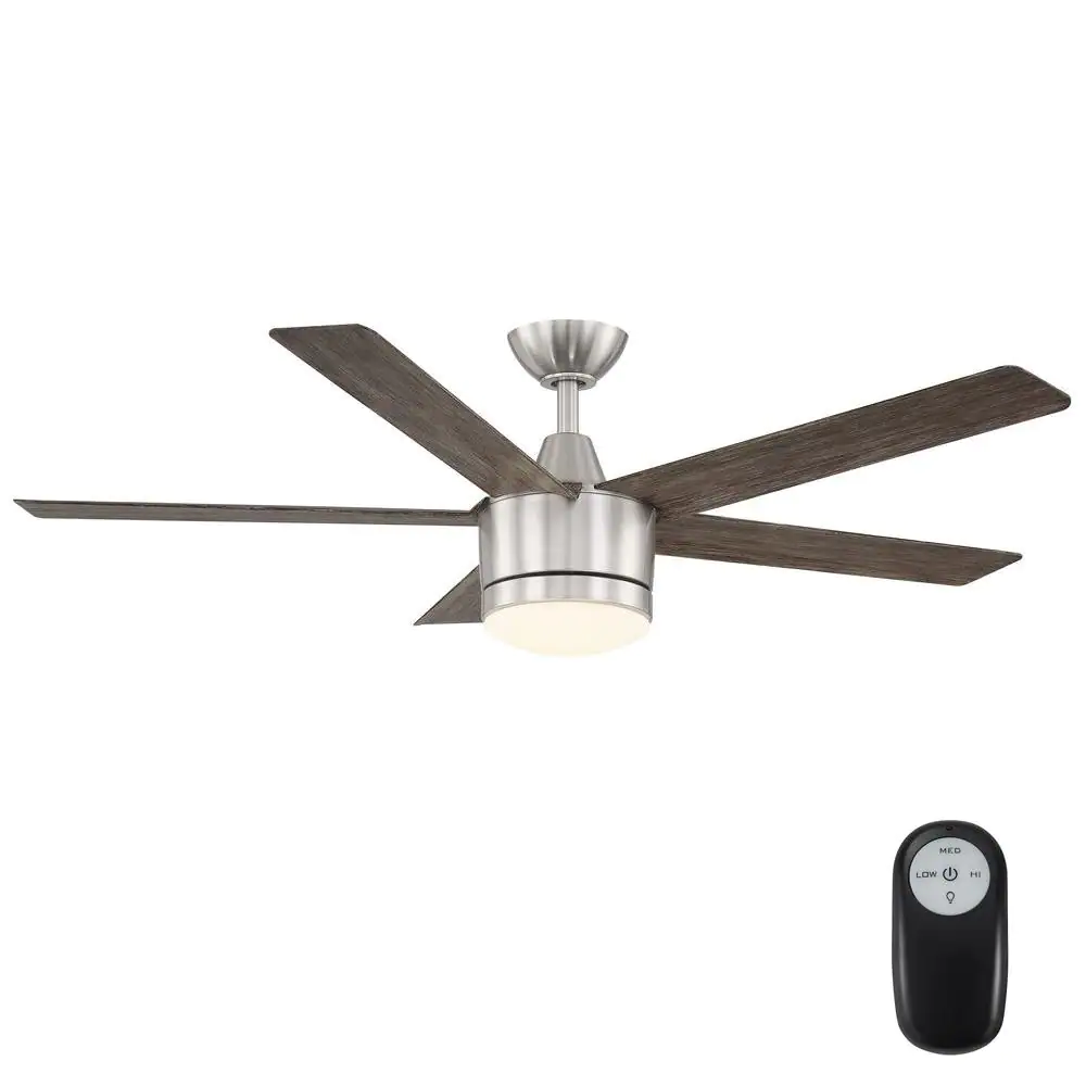 Home Decorators Collection Merwry 52 in. Integrated LED Indoor Brushed Nickel Ceiling Fan with Light Kit and Remote Control