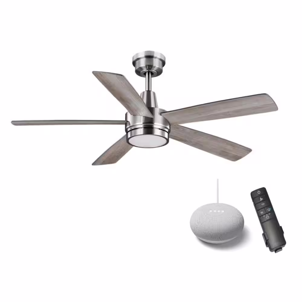 Hampton Bay Fanelee 54 in. White Color Changing Brushed Nickel Smart Hubspace Ceiling Fan with Remote and Google Nest Mini Chalk