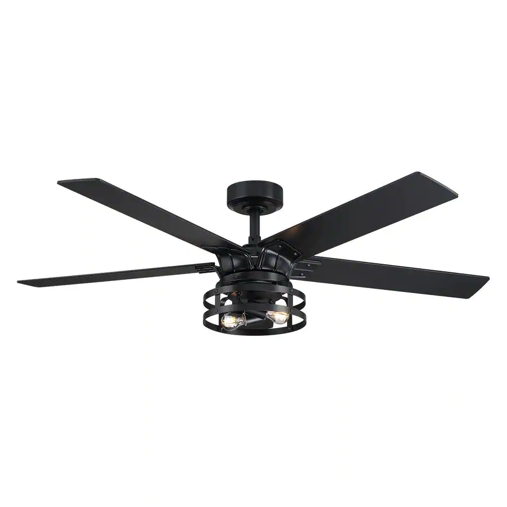 Parrot Uncle 52 in. Industrial Downrod Mount Black Ceiling Fan with Remote Control and Light Kit