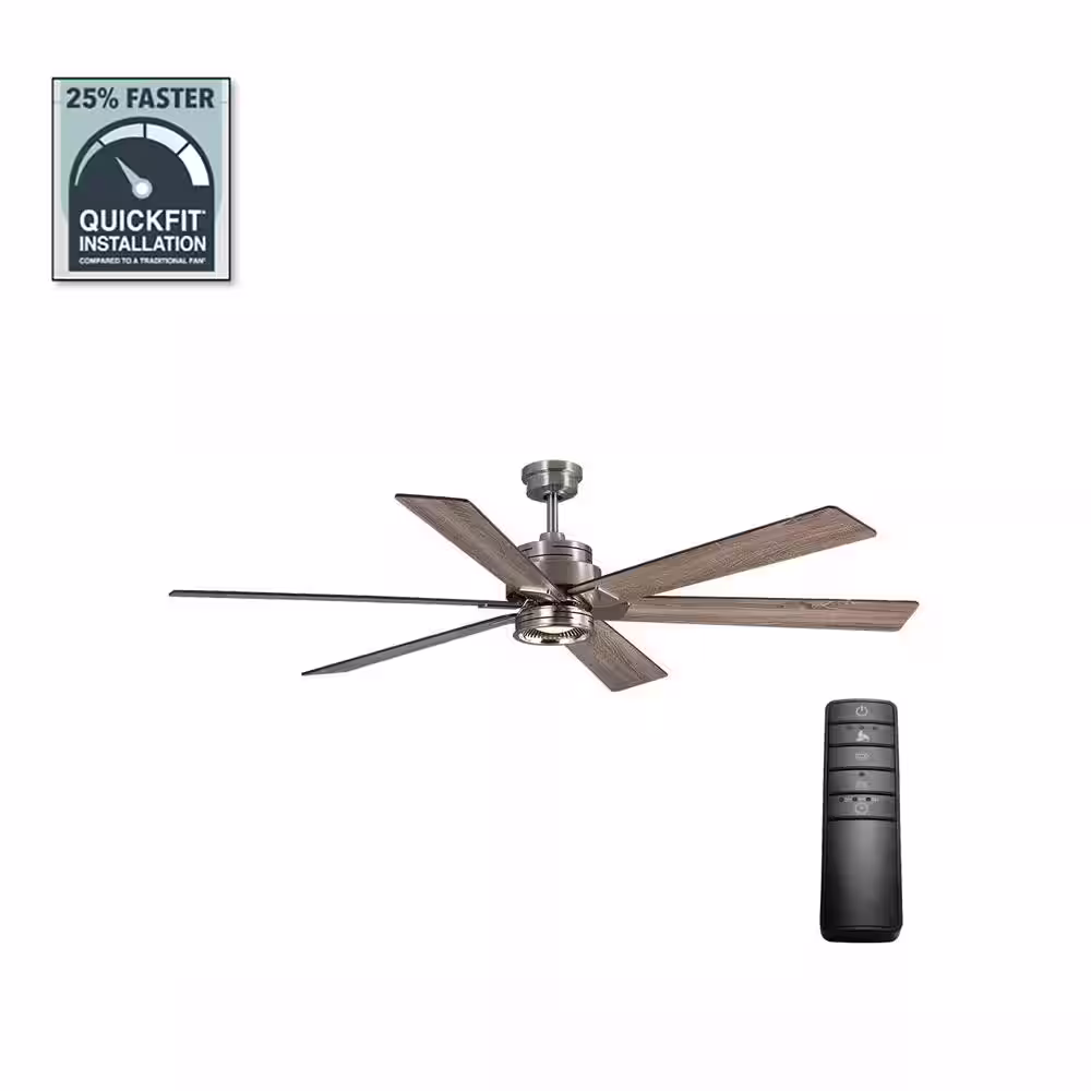 Home Decorators Collection Statewood 70 in. Indoor LED Brushed Nickel Ceiling Fan with Light Kit, Downrod, Remote Control and 6 Reversible Blades