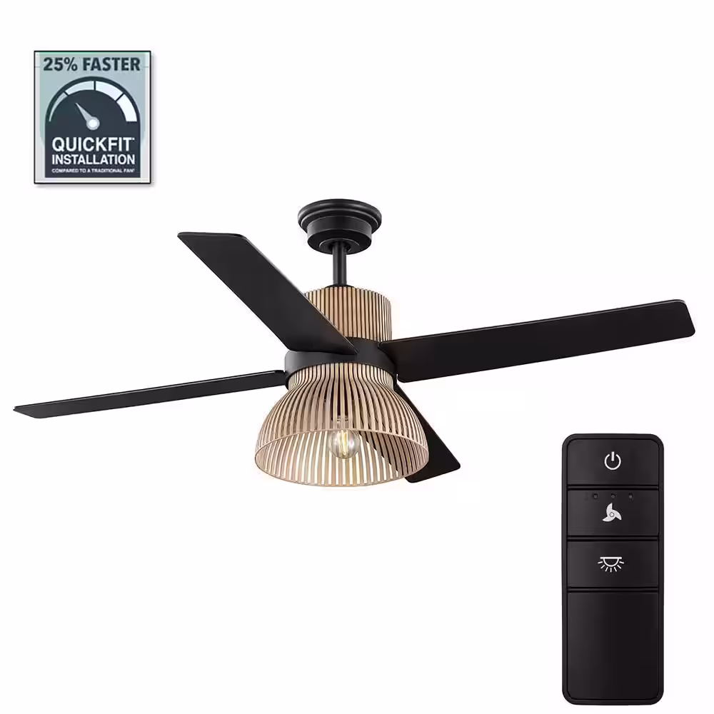 Home Decorators Collection Savannah 52 in. Indoor LED Matte Black Dry Rated Ceiling Fan with 4 Reversible Blades, Light Kit and Remote Control