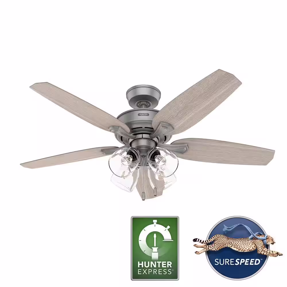 Hunter Channing 52 in. Hunter Express Indoor Matte Silver Ceiling Fan with Light Kit Included