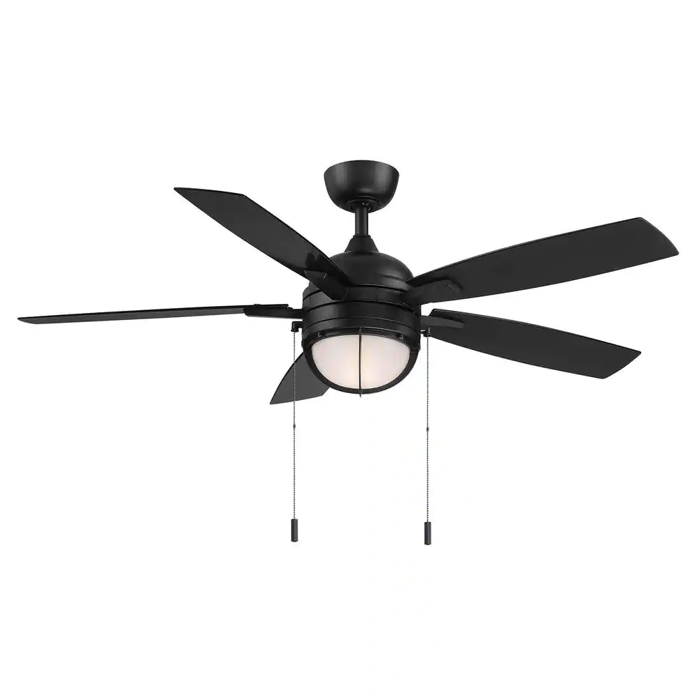 Hampton Bay Seaport II 52 in. LED Indoor/Outdoor Matte Black Ceiling Fan with Light and Pull Chains Included