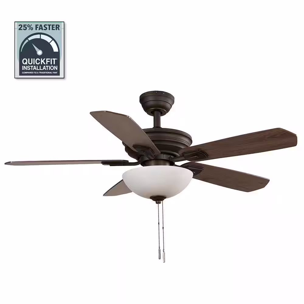 Hampton Bay Wellston II 44 in. Indoor LED Bronze Dry Rated Downrod Ceiling Fan with Light Kit and 5 Reversible Blades