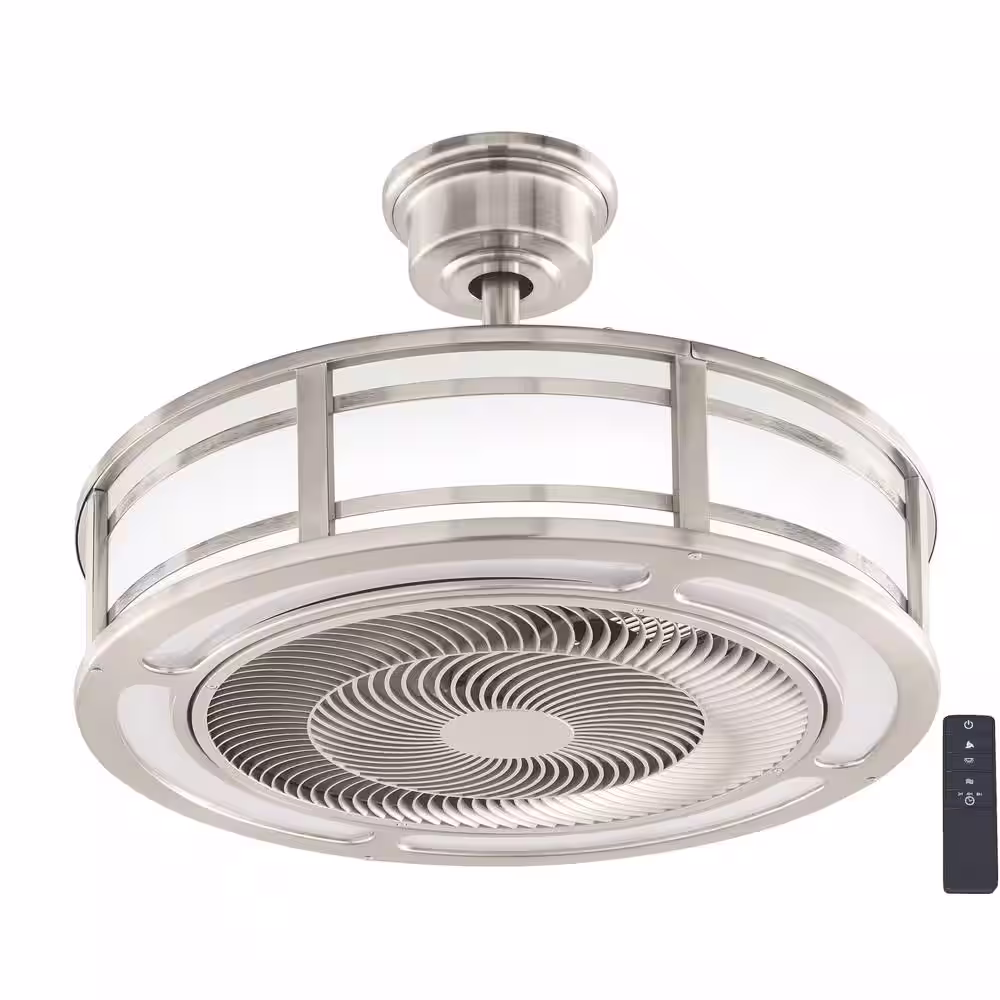 Home Decorators Collection Brette III 23 in. Integrated LED Indoor/Outdoor Brushed Nickel Ceiling Fan with Light and Remote Control