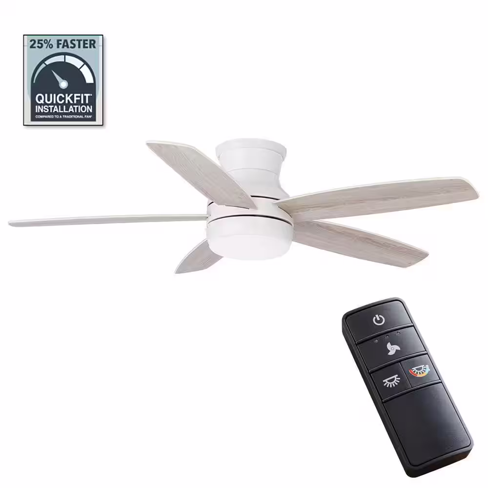 Hampton Bay Ashby Park 52 in. White Color Changing Integrated LED Matte White Indoor Ceiling Fan with Light Kit and Remote Control