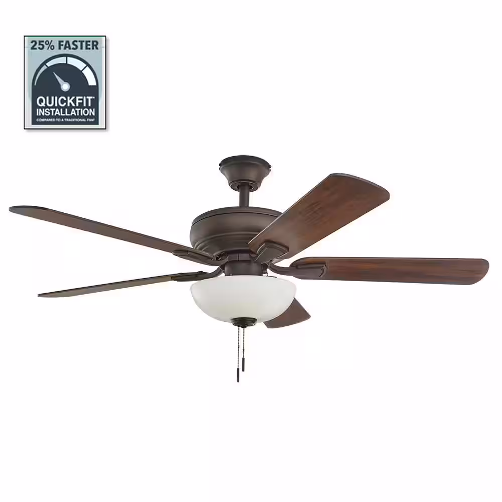 Hampton Bay Rothley II 52 in. Indoor LED Bronze Ceiling Fan with Light Kit, Downrod, Reversible Motor and Reversible Blades