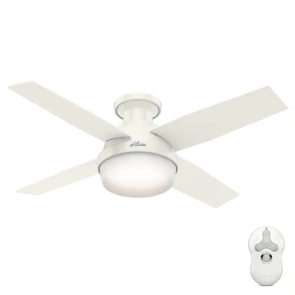 Hunter Dempsey 44 in. Low Profile LED Indoor Fresh White Ceiling Fan with Universal Remote