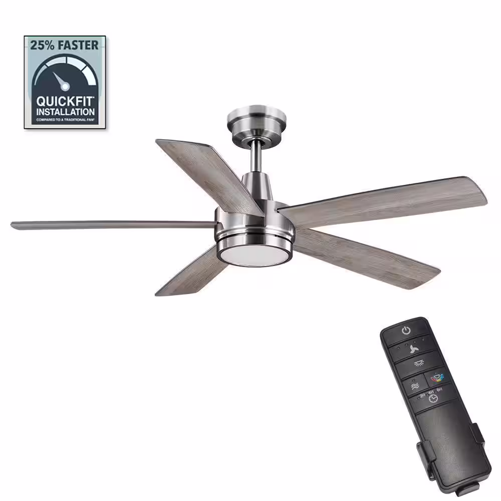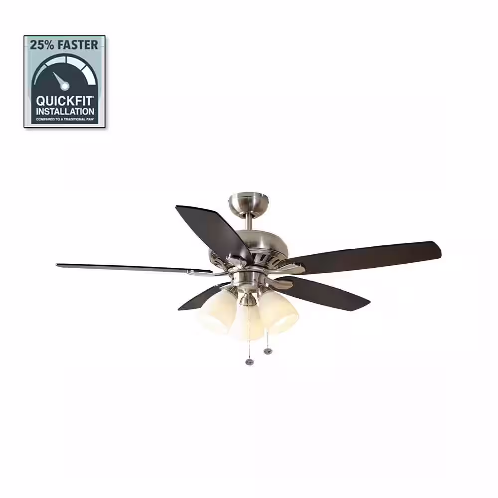 Hampton Bay Rockport 52 in. Indoor LED Brushed Nickel Ceiling Fan with Light Kit, Downrod, Reversible Blades and Reversible Motor