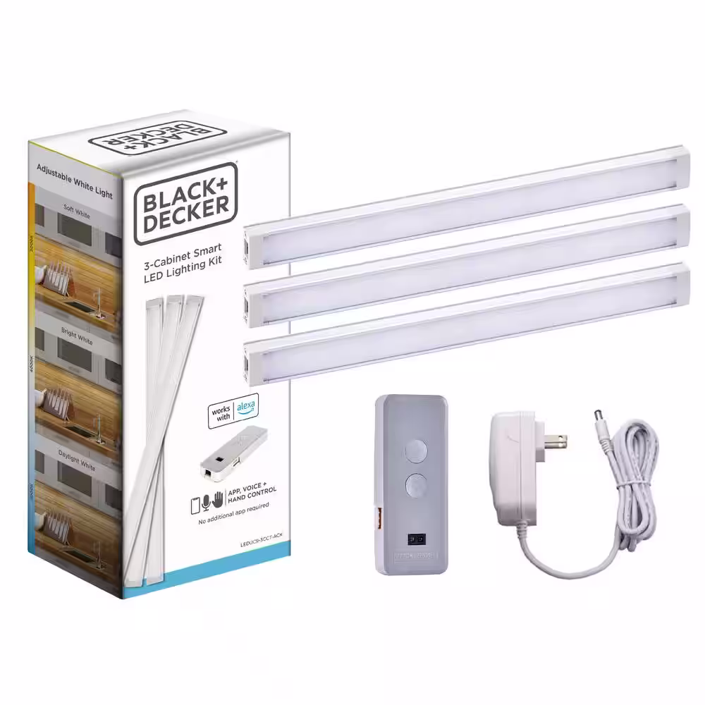 BLACK+DECKER 18 in. LED Voice-Enabled Smart Under Cabinet Lighting Kit, 1-Bar Adjustable White Light
