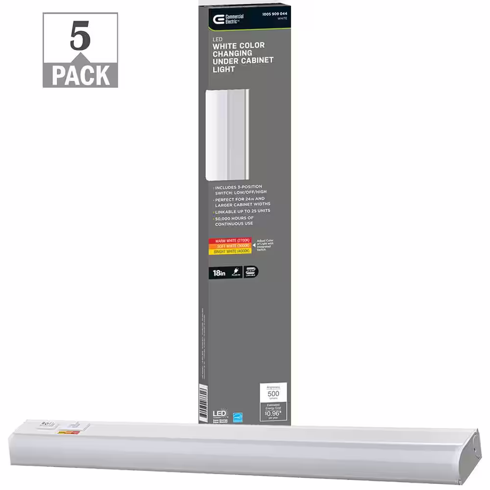 Commercial Electric 18 in. 8-Watt Plug-in Color Changing LED Under Cabinet Light 3-Position Switch Linkable 500 Lumens (5-Pack)