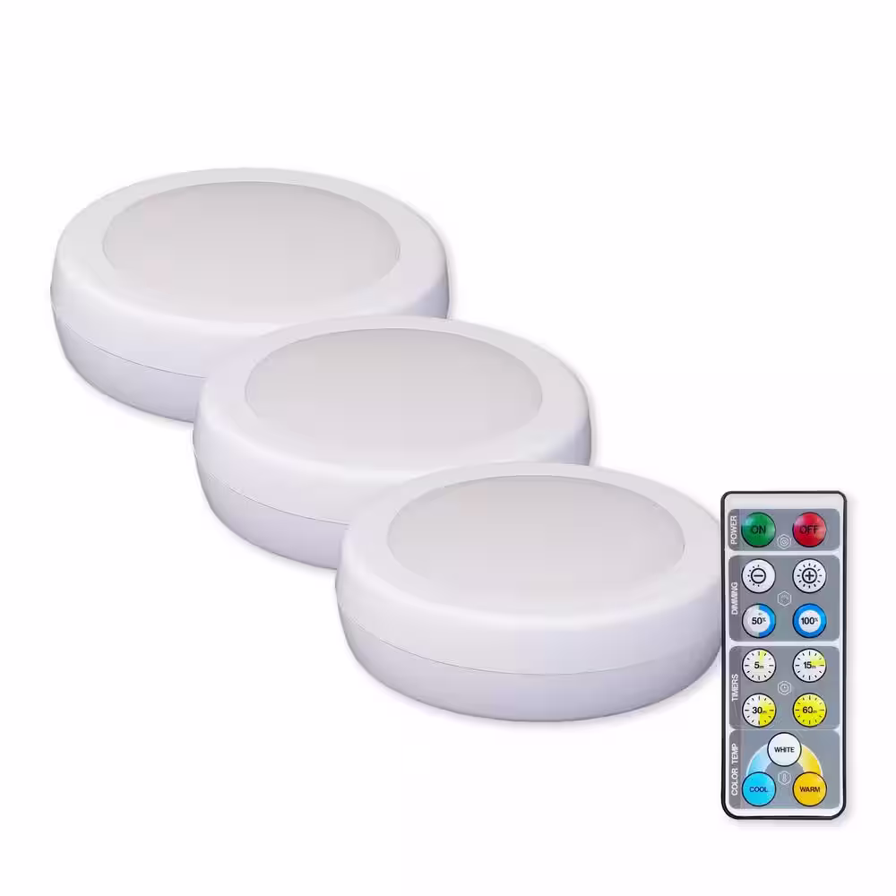Westek LED White Adjustable Puck Light with Remote (3-Pack)
