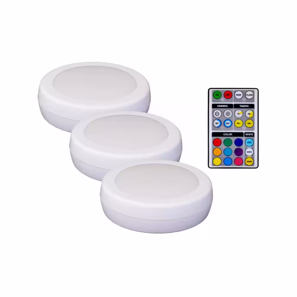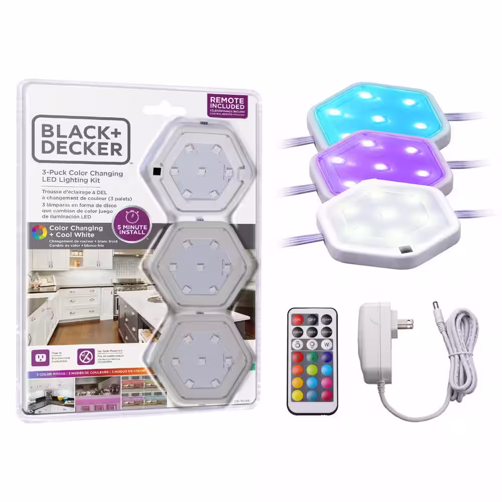 BLACK+DECKER LED Puck Light Kit RGB Color Changing (3-Pack)