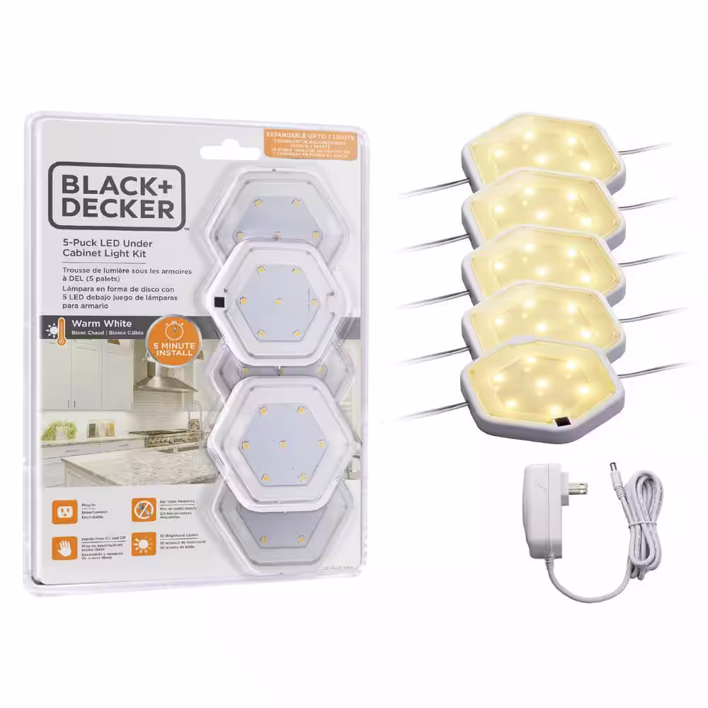 BLACK+DECKER LED Warm White Puck Light Kit (5-Pack)