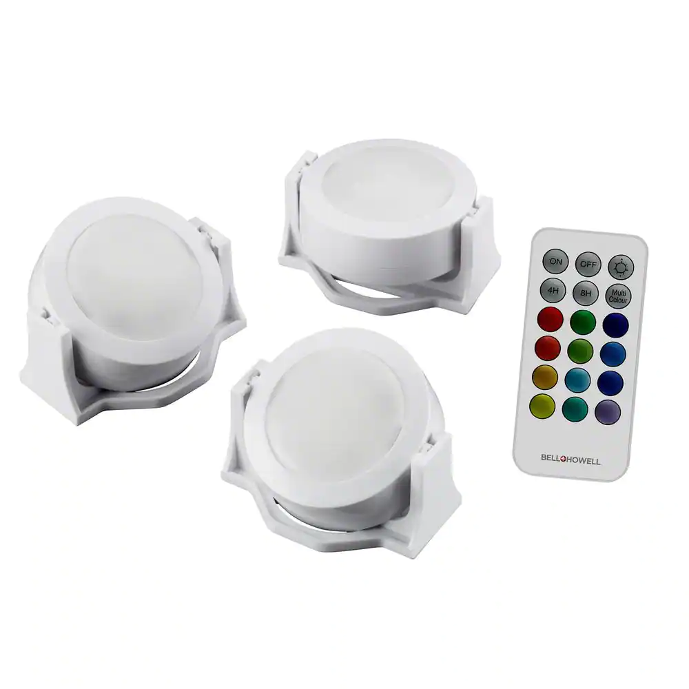 Bell + Howell Color Changing Swivel Base 13 Color Options LED Cabinet Puck Lights (3-Pack) with Remote