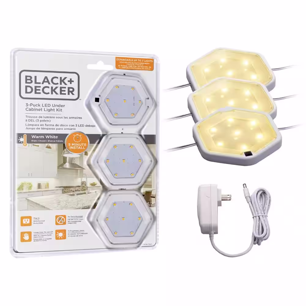 BLACK+DECKER LED Warm White Puck Light Kit (3-Pack)