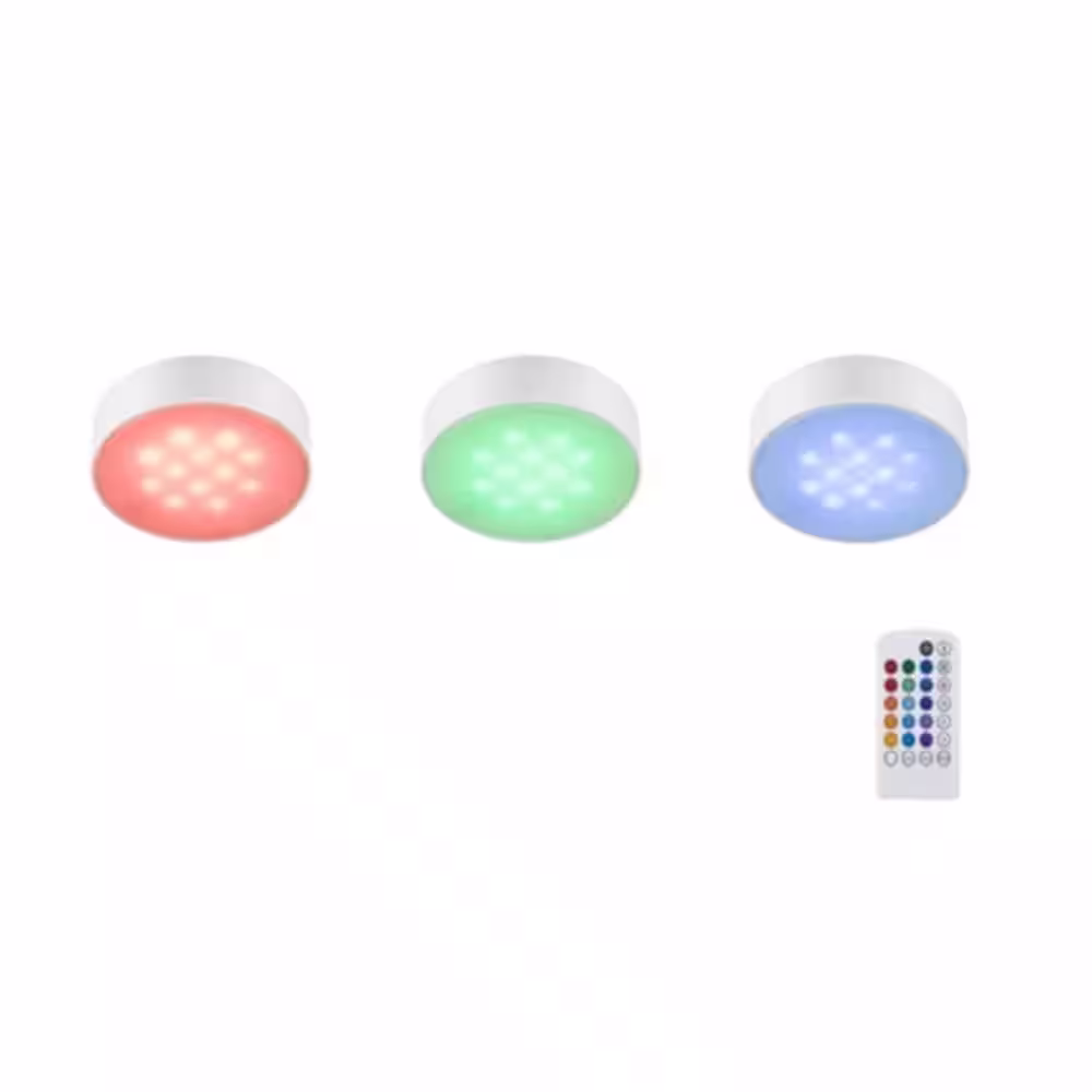Commercial Electric 3-Light LED White RGB Color Changing Puck Light Kit