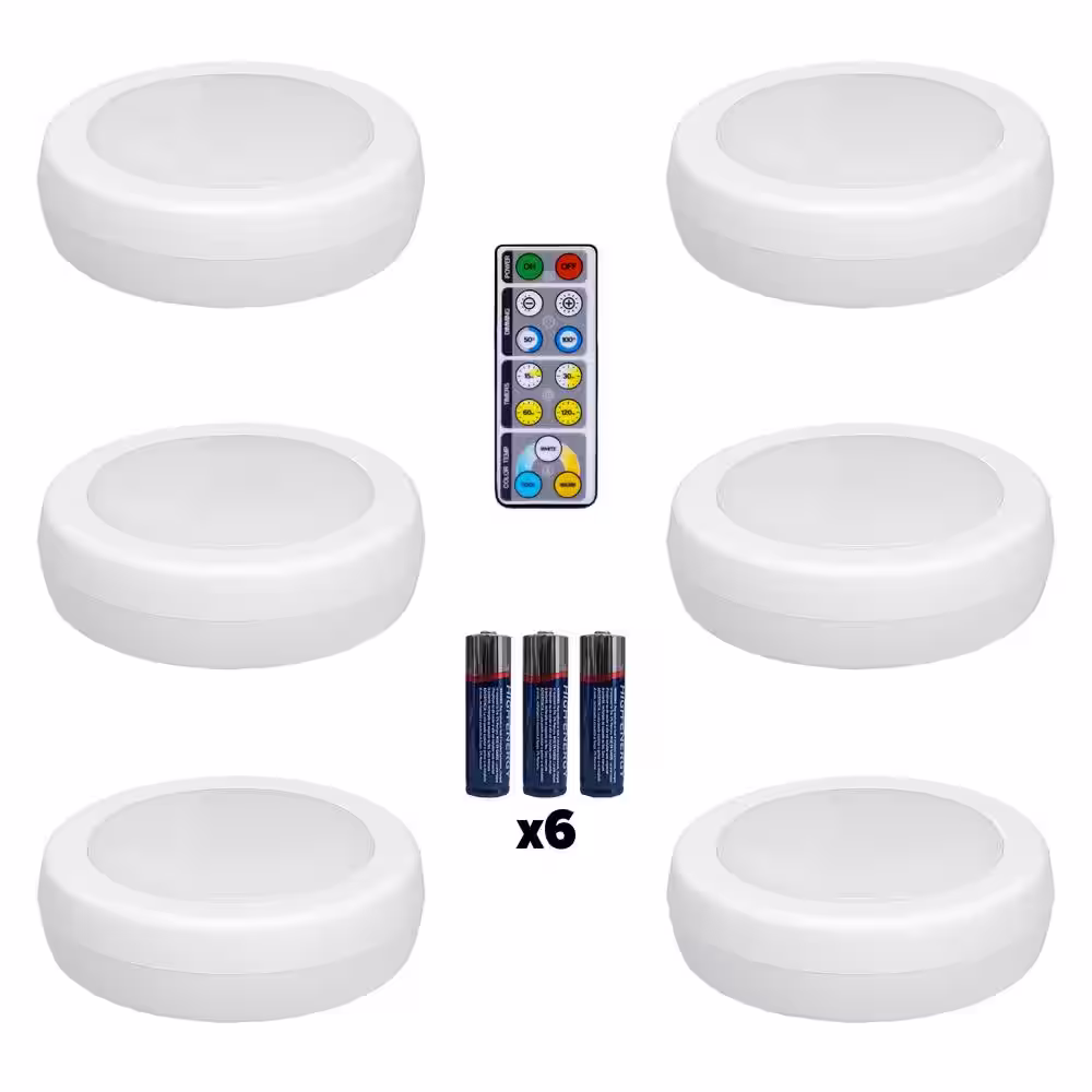 Westek LED White Adjustable Puck Light with Remote and Batteries (6-Pack)