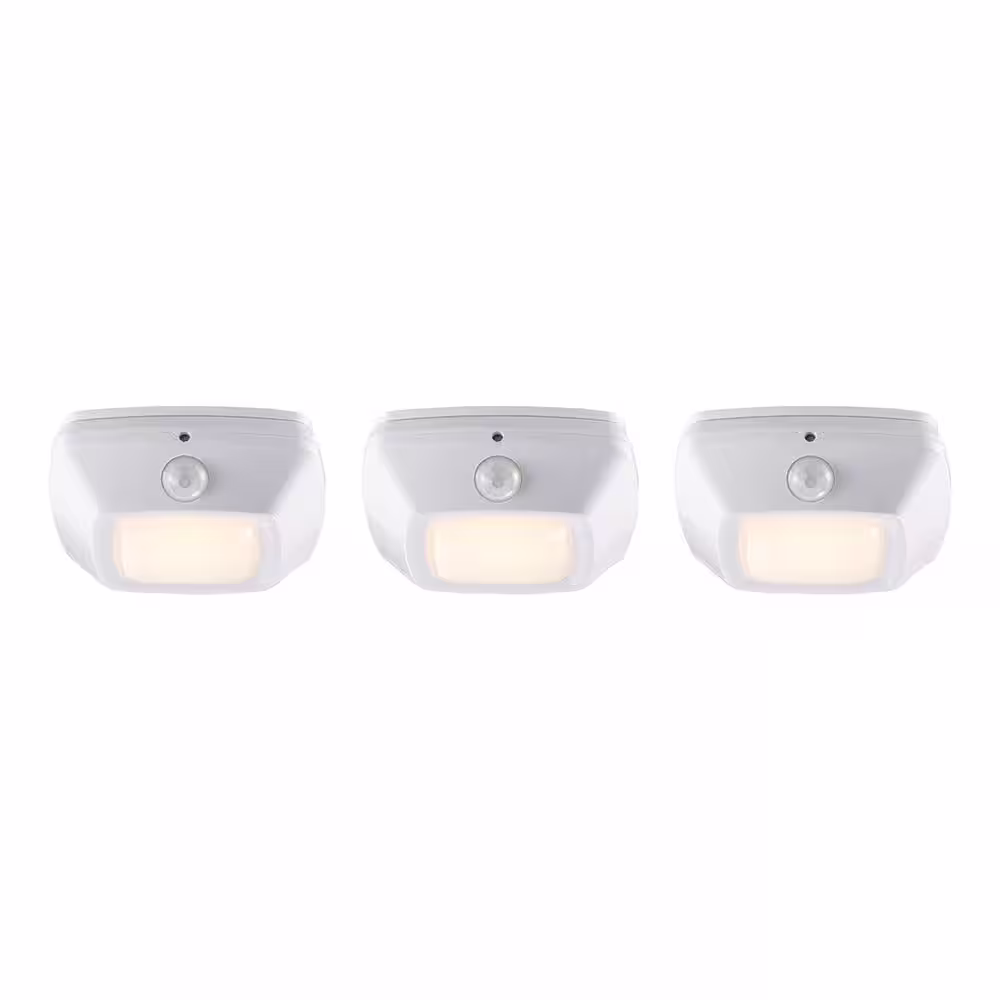 Commercial Electric Battery Operated 3 in. Square White LED Puck Light with Motion Sensor (3-Pack)