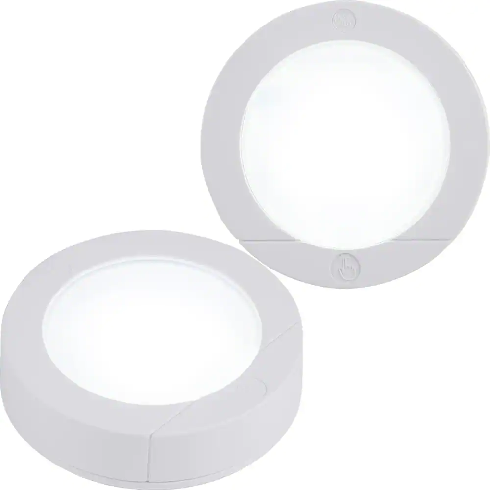 GE Battery Operated Touch Activated White LED Puck Light (2-Pack)