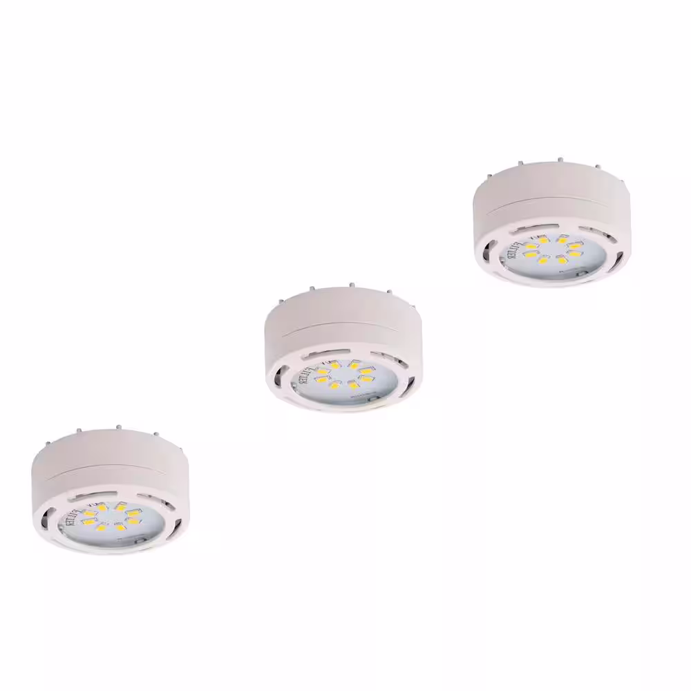 AMAX LIGHTING LED White Puck Light with Power Cord (3-Pack)