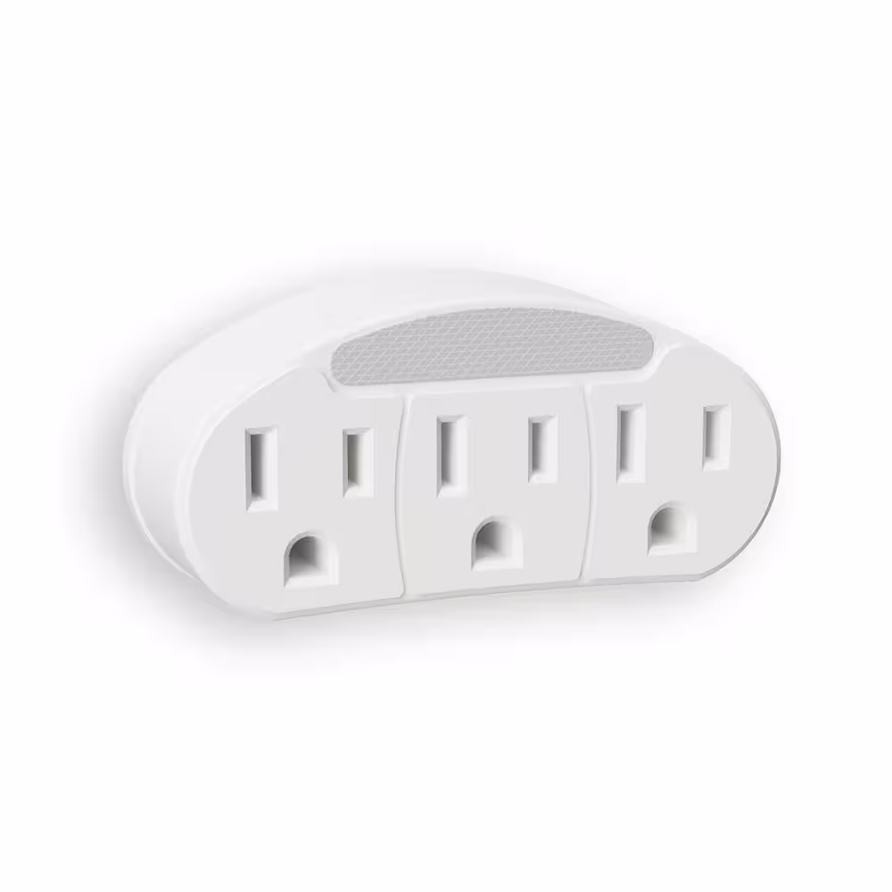 Westek White Outlet Adapter LED Night Light with 3-Grounded Outlets
