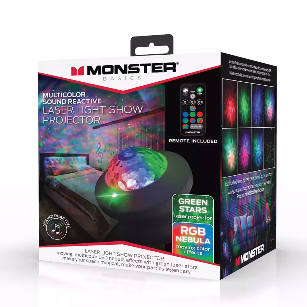 Monster Multi-Color Sound-Activated Laser Light Show Projector, Remote Control